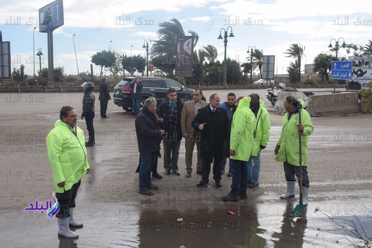 محافظ الإسكندرية يتابع تصريف مياه الأمطار بالطرق السريعة والصحراوي.. صور
