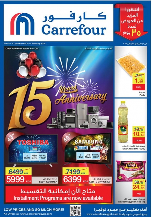 فى يناير 2018 يقدم مجموعة من أقوى العروض ويبدأ بتقديم تسهيلات للكثير من المواطنين بفتح باب التقسيط على الأجهزة الإلكترونية والكهربائية خاصة الشاشات والثلاجات وأجهزة المحمول وهذه العروض تستمر لمدة 35 يوما بداية من اليوم.