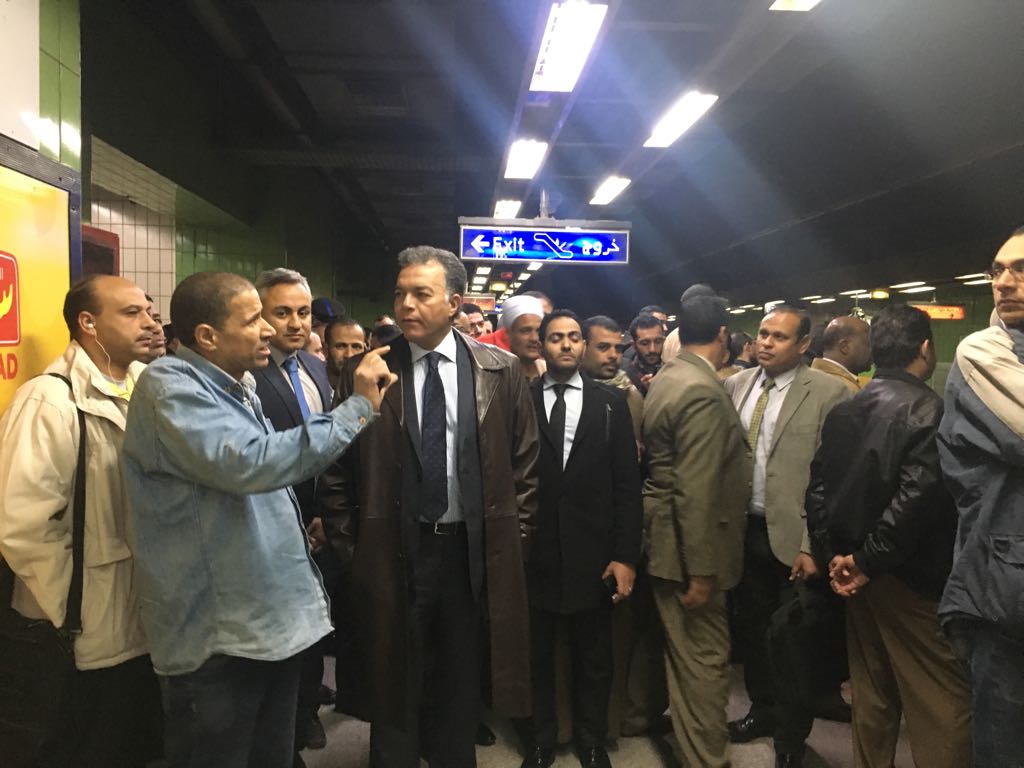 وناقش الوزير عددا من الركاب فى تباعد زمن التقاطر بالخط الثاني وقام ومعه الراكب بالتوجه إلى أرصفة الخط الثاني بالمحطة وتم حساب زمن التقاطر والذي لم يتجاوز 3.5 دقيقة وهو ما أكد معه الوزير على انتظام زمن التقاطر بالمترو، كما أشار بعض الركاب إلى الزحام بخطوط المترو فأوضح وزير النقل أن ذلك ناتج عن أن عدد الركاب يفوق القدرة الاستيعابية للمترو حاليا.