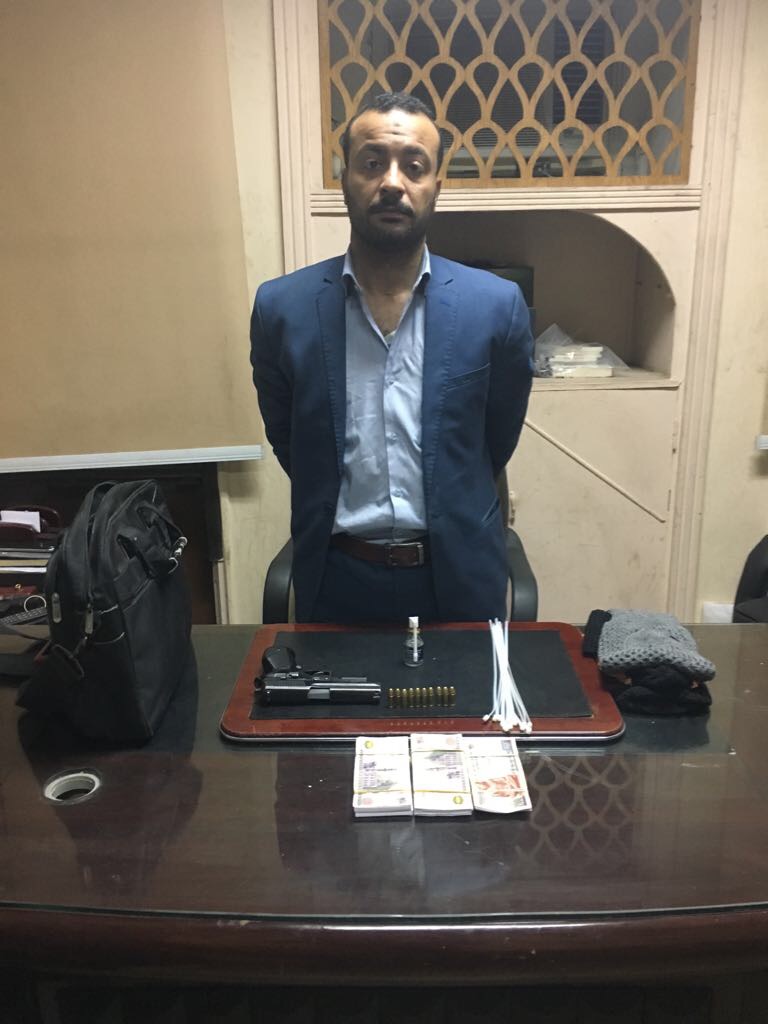 وفور إخطار اللواء محمد منصور، مدير مباحث العاصمة، وجه بإعداد كمين له بأماكن تردده، حيث تم ضبطه أثناء تواجده بكافيه بشارع نوبار، وبحوزته طبنجة صوت و10 طلقات وعبوة سبراى "مخدر" و13 أفيز بلاستيك و4 ماسك و15 ألف جنيه.
