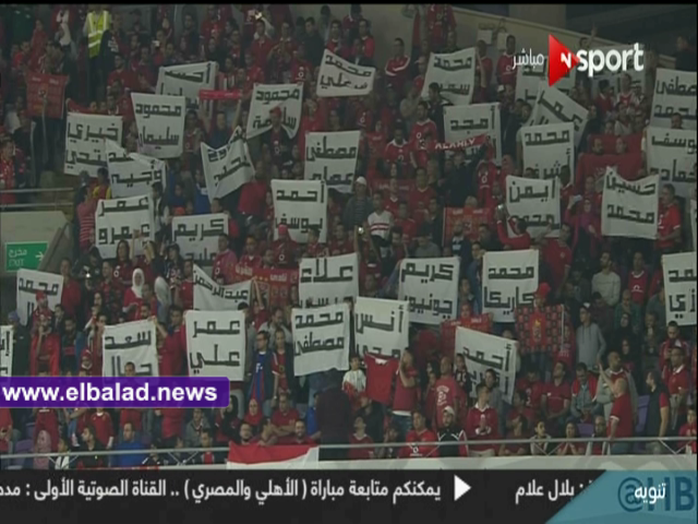 شهد لقاء الفريق الأول لكرة القدم بنادي الأهلي أمام منافسه فريق المصري البورسعيدي، لقطة إنسانية من جمهور المارد الأحمر الذين رفعوا أسماء شهداء المباراة المنكوبة التي أقيمت في بورسعيد.