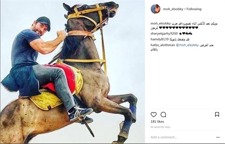 نشر المنتج محمد السبكي منذ قليل، صورة جديدة للنجم العالمي سكوت ادكنز وهو يرقص بالحصان ضمن كواليس فيلم "حرب كرموز".