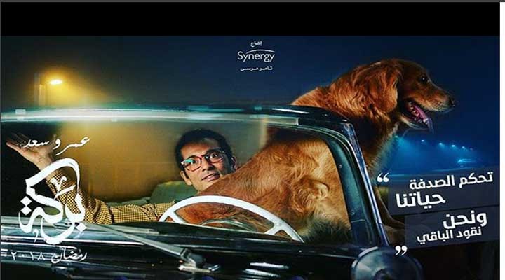وظهر عمرو في الأفيش وهو يقود سيارته وبجواره كلب ، وعلق عمرو على الصورة قائلا :”علي البركة .وكتب بجانب الافيش مقولة " تحكم الصدفة حياتنا .ونحن نقود الباقى " .