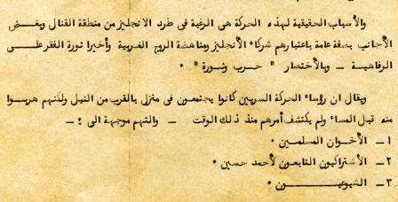 ويكشف الكتاب عن وثيقة خطيرة، تحررت فى بدايات فبراير عام 1952، وبعد أيام قليلة من الحريق، عندما حصل البكباشى «المقدم» يحيى حسن من «البوليس السياسى» على مشروع تقرير يعتزم الصحفى الفرنسى «جيان ميرلى» كتابته إلى صحيفة «لوفيجارو» الفرنسية، حول مشاهداته كشاهد عيان لأحداث يوم 26 يناير. يقول الصحفى الفرنسى «جان ميرلى» فى بداية شهادته حول الحادث ان المتسببين فى إشعال الحرائق - وعددها مائتا حريق تقريبًا - «المدبرين» وضعوا خطتهم بـ«دقة ونفذوها بكل سهولة».. ومما سهل لهم مأموريتهم هو اشتراك البوليس فيها.. وتأخر تدخل الجيش..! وأن رؤساء الحركة السريين كانوا يتجمعون فى منزل بالقرب من النيل ولكنهم هربوا منه قبل المساء ولم يكتشف أمرهم منذ ذلك الوقت.