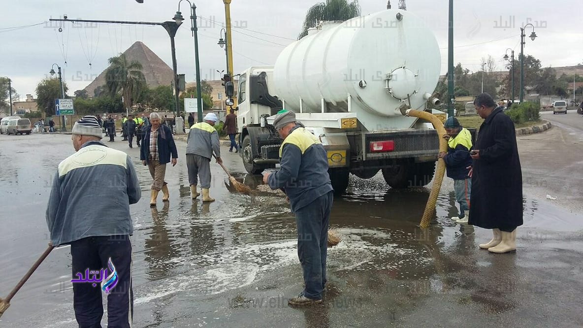وقال اللواء محمد كمال الدالى محافظ الجيزة إن الهيئة دفعت بـ 18 سيارة شفط للعمل على سحب مياه الأمطار من مطالع ومنازل الكباري والأنفاق ومحور 26 يوليو والشوارع الرئيسية بنطاق احياء الجيزة وطريق مصر اسكندرية الصحراوى وميدان الرماية والمنطقة الاثريه بالهرم وشوارع السودان والهرم وفيصل والجامعه والنهضه وأحمد عرابي وجامعة الدول العربية وشارع النيل بالجيزة هذا بخلاف 7 معدات من الأحياء وشركة مياه الشرب والصرف الصحى.
