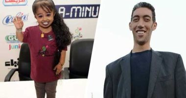 أطول رجل وأقصر سيدة فى العالم يصلان الاهرامات لتنشيط السياحة