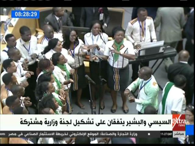وشهدت القاعة رقص وغناء من بعض الفرقث الأثيوبية، ومشاركة كبيرة للزعكاء والقادة الأفارقة.