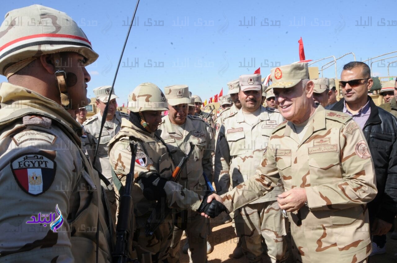 تفقد الفريق محمد فريد رئيس أركان حرب القوات المسلحة عناصر من تشكيلات ووحدات الجيش الثانى الميدانى المتمركزه بسيناء للوقوف علي الحالة الامنية ومتابعة اجراءات تنفيذ الخطط والمهام الامنية التي تكلف بها قوات انفاذ القانون لتأمين المواطنين والتعامل مع البؤر الارهابية بمناطق مكافحة النشاط الارهابي بسيناء .