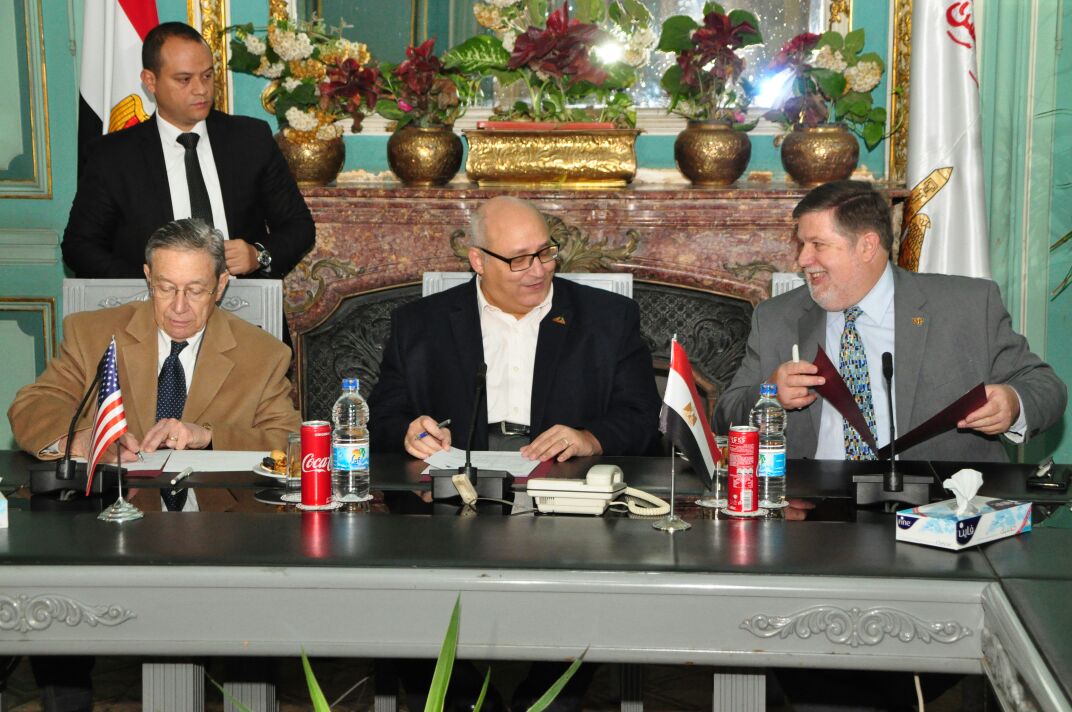 وعقب توقيع البروتوكول بمقر قصر الزعفران تم تبادل الدروع و الهدايا والصور التذكارية ثم قاما وفدي الجامعتين الأميريكيتين بجولة تفقدية داخل عدد من معامل كلية الهندسة بمرافقة كلًا من الدكتور عبد الوهاب عزت و الدكتور أيمن عاشور، عميد كلية الهندسة.