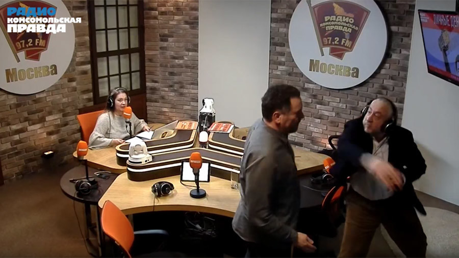 زعيم شيوعي راحل يشعل "عراكا بالأيدي" بين صحفيين روسيين على الهواء.. فيديو
