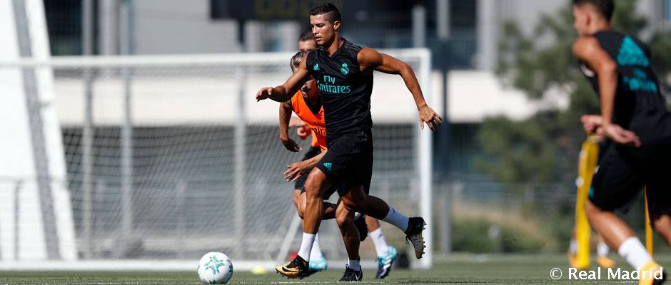 تدرب البرتغالي كريستيانو رونالدو، مهاجم ريال مدريد، اليوم في صالة الألعاب الرياضية على هامش المران الجماعي لأبناء المدرب الفرنسي زين الدين زيدان، الذي قاد جلسة تدريب جديدة استعدادا لزيارة ليفانتي يوم السبت المقبل ضمن منافسات الجولة الـ22 من الليجا.