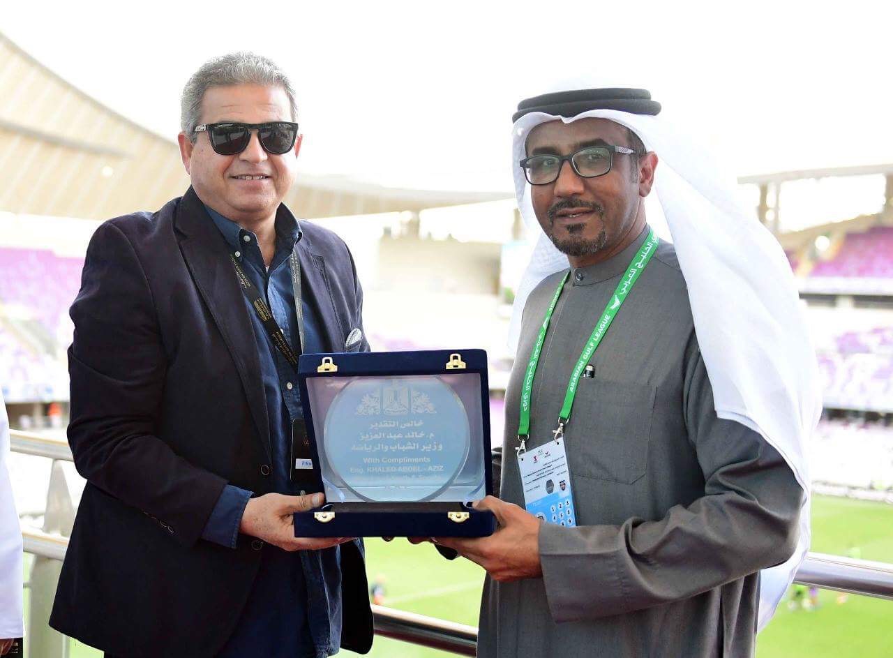 وزير الرياضة يشاهد حسين الشحات خلال مباراة العين وعجمان بإستاد هزاع بن زايد