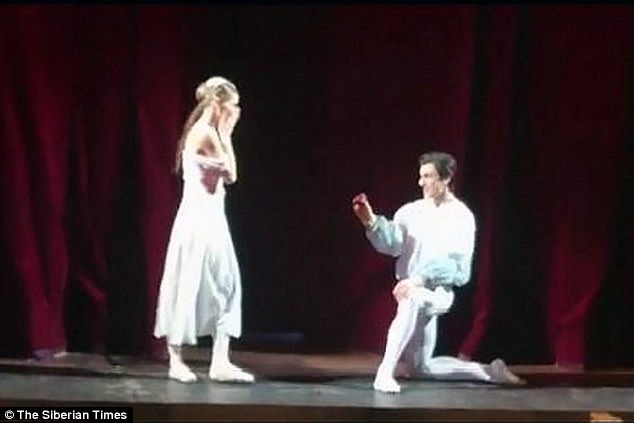 استغل راقص باليه دورهم في عرض مسرحي، ليطلب يد حبيبته للزواج أثناء رقصهم، على أكبر خشبة مسرح بروسيا، في مشهد يشبه العاشقين "روميو وجولييت".