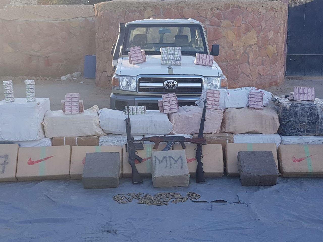 تمكنت قوات حرس الحدود من ضبط عربة دفع رباعى على الحدود الغربية محملة بـ 375 كجم من جوهر الحشيش المخدر و730 ألف قرص مخدر بالإضافة إلي بندقيتين قناصة وبندقية آلية.