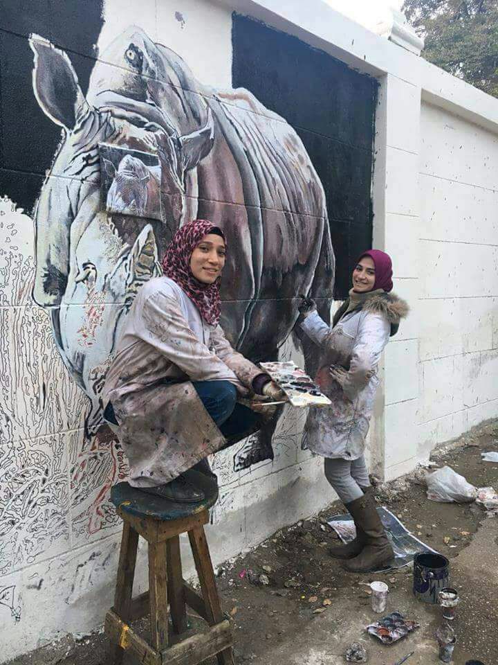 طالبات تربية فنية جامعة حلوان يحولون جدران حديقة الحيوان لـ"لوحة فنية"..صور