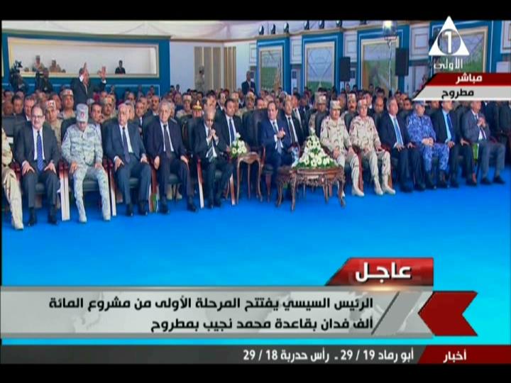 هتف أحد المشاركين فى احتفالية افتتاح المرحلة الأولي من مشروع 100 ألف فدان بقاعدة محمد نجيب مطروح بحضور الرئيس عبدالفتاح السيسي، قائلا: "سير على بركة الله كلنا معاك.. شبابك ورجالتك وعيالك كلنا معك.. معك مصر وشباب مصر ومستقبل مصر، سير على بركة الله".