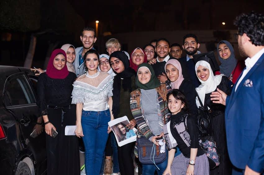 وحرصت كارمن على تلبية طلبات الجمهور بالتقاط مجموعة من الصور السيلفي معها عقب انتهاء فقرتها، كما طلبت من ثلاثة طلاب من ذوي الاحتياجات الخاصة أن تلتقط صورًا تذكارية معهم بعدسة المصور الخاص بها عمرو طارق.