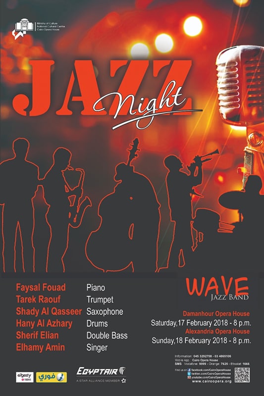 تنظم دار الأوبرا المصرية برئاسة الدكتور مجدي صابر حفل فني لفرقة ويف جاز باند فى الثامنة مساء السبت المقبل الموافق 17 فبراير على مسرح أوبرا دمنهور، حيث تقدم الفرقة باقة متنوعة من موسيقى الجاز منها: Cheek to Cheek - Sway - Impressions - Perhaps perhaps.