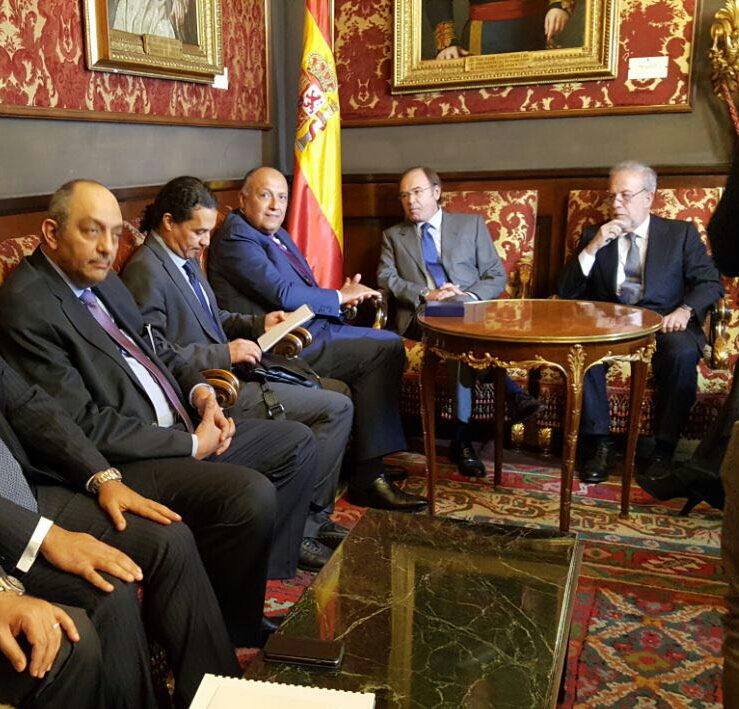 التقي وزير الخارجية سامح شكري بعد ظهر اليوم الأربعاء برئيس مجلس الشيوخ الإسباني "بيو جارسيا اسكوديرو" في إطار زيارته الحالية للعاصمة الإسبانية مدريد والتي تستمر لمدة يومين.