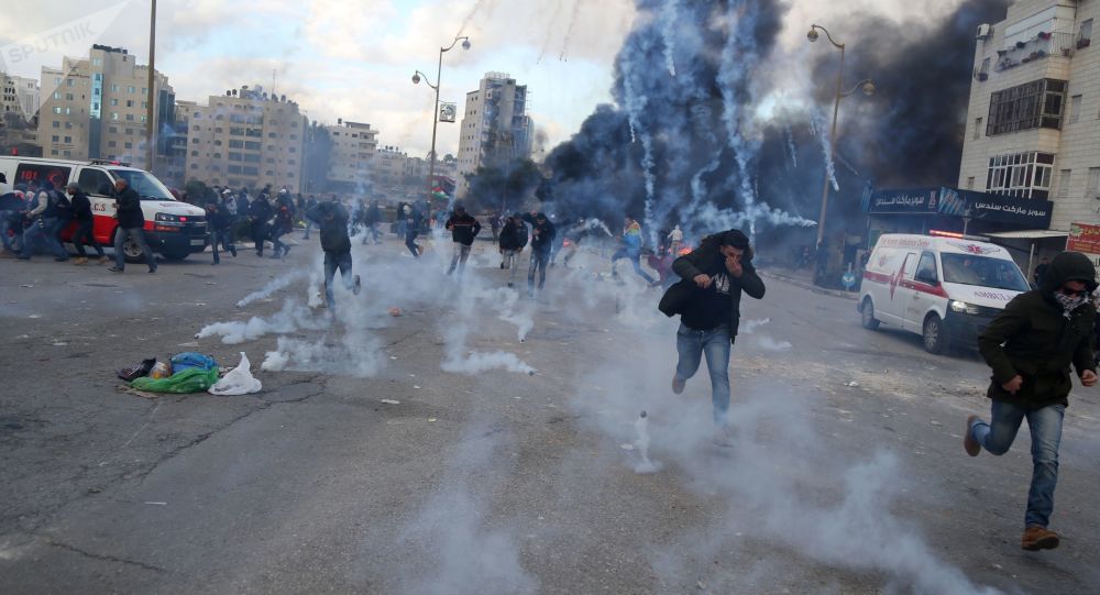 أصيب عشرات الطلبة الفلسطينيين بحالات اختناق اليوم /الخميس/ جراء استنشاق الغاز السام الذي أطلقته قوات الاحتلال الإسرائيلي على حاجز أبو الريش قرب الحرم الإبراهيمي بالخليل جنوب الضفة الغربية.