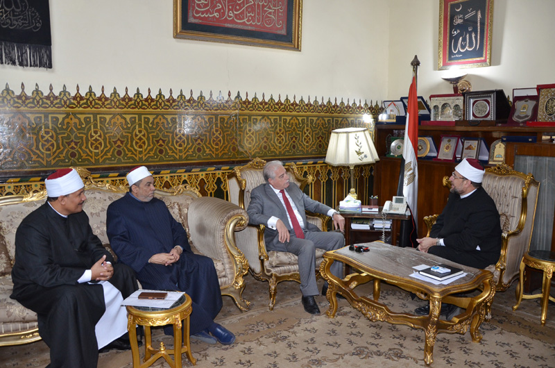 استقبل وزير الأوقاف الدكتور محمد مختار جمعة اليوم، السبت، اللواء خالد فودة، محافظ جنوب سيناء، وذلك لدراسة تطوير العمل بمركز الثقافة الإسلامية للغات بمسجد الصحابة بمدينة شرم الشيخ، حيث يوجد بالمركز ستة أئمة، ثلاثة للغة الإنجليزية، وثلاثة للغة الفرنسية، وسيتم دعم المركز بمزيد من المطبوعات وبعض الأئمة المجيدين للغة الألمانية من الناجحين في الدورة التي تجري اختبارات القبول لها اليوم.