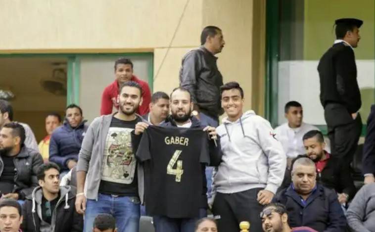 حرص أحد مشجعي نادي الزمالك على رفع قميص، عمر جابر الظهير الأيسر السابق للفريق الأبيض الذي يلعب حاليا في صفوف لوس أنجلوس بالدوري الأمريكي بعد إعارته من بازل السويسري.
