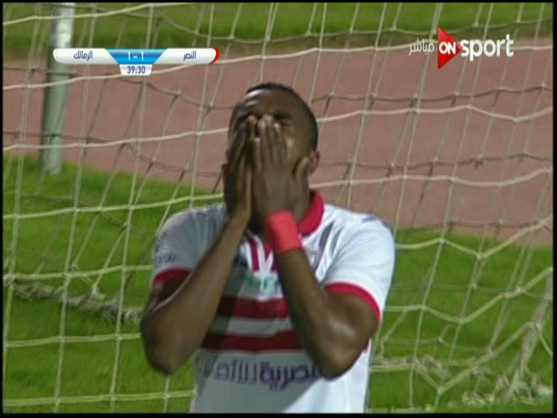 مرر حمدي النقاز جناح الزمالك الكرة العرضية باحترافية شديدة على رأس كاسونجو ولكنه رفض أن يسكن الكرة الشباك فسددها بطريقة غريبة برأسة لتخرج بجوار المرمى ويضيع على الزمالك هدف التقدم على النصر.
