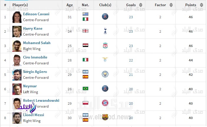 ورفع صلاح رصيده من الأهداف الى 23 هدفا ليتقدم إلى المركز الأول بالتساوي مع المهاجم الاورجوياني ادينسون كافاني هداف باريس سان جيرمان الفرنسي والمهاجم الانجليزي هاري كين مهاجم توتنهام هوتسبير الانجليزي