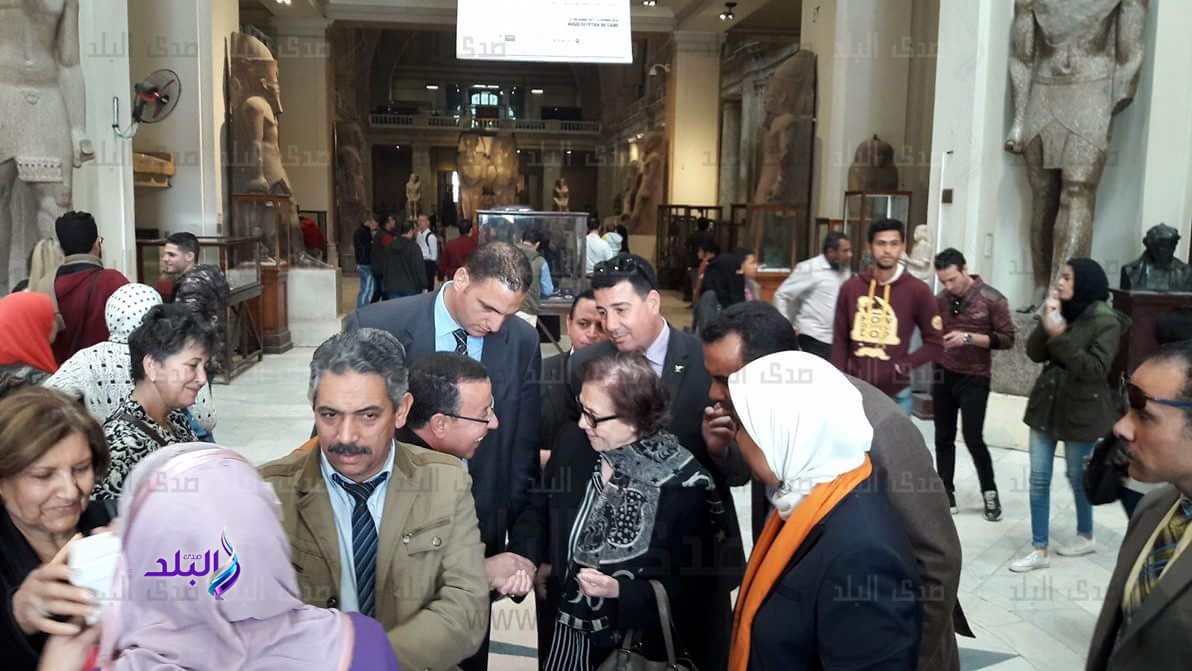 وأوضح الباحث الاثري تامر المنشاوي ان "المناضلة جميلة بوحيرد قامت بزيارة مجموعة الملك توت عنخ آمون،وشاهدت كرسي العرش وآثار الملك بسوسنس الأول و القناع الذهبي لتوت عنخ آمون".