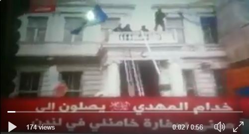 احتلت جماعة الرجل الدين الشيعي (الشيرازي) الذي اعتقلته ايران، سفارة ايران في لندن.، وأنزلت العلم الايراني ورفعوا أعلام المجموعة التي تدعى "خدام المهدي"#ايران pic.twitter.com/S5dz3tKZEH