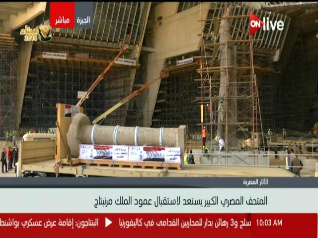 وأشار إلى أن عمود الملك مرنتباح و4300 قطعة من آثار الملك توت غنخ آمون، سيتم نقلهم إلى المتحف المصري الكبير،لافتا إلى أنه سيتم افتتاح المرحلة الأولى من المتحف المصري الكبير في نهاية عام 2018،ويتم عمل التجهيزات اللازمة؛ حيث سيتم افتتاح المرحلة الأولى من المتحف المصري الكبير في نهاية عام 2018.