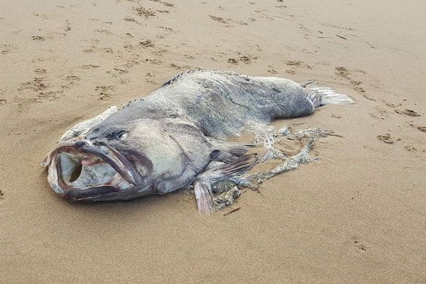 عثر زوجان أثناء سيرهما على أحد الشواطئ على سمكة مهولة نافقة تزن 24 رطل، ليصابا بالصدمة والذهول، لضخامة حجم السمكة التي لم يروا مثيل لها.