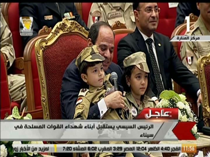 وقال السيسي لأبناء الشهداء: "مصر كلها فرحانة بيكم أنتم ولاد الأبطال، لكم في رقابنا كل الخير والسلام، فحقكم في رقبة كل مصري".