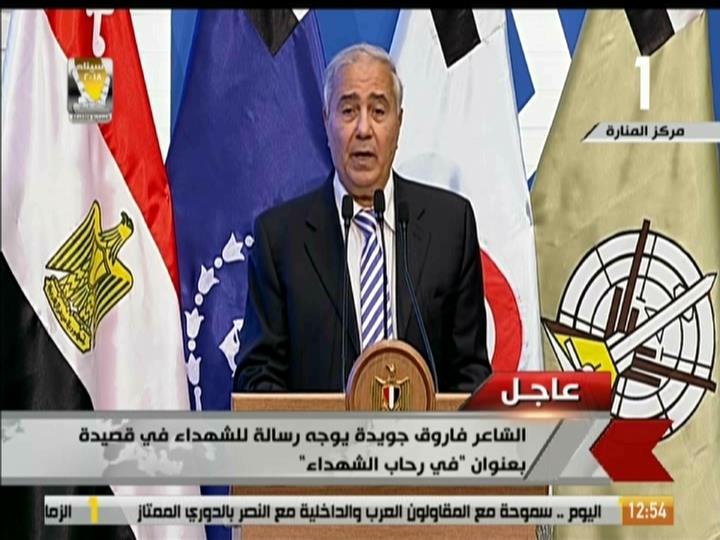 ووجه جويدة خلال كلمته بالندوة التثقيفية الـ27 للقوات المسلحة، المنعقدة الآن فى مركز المنارة للمؤتمرات تحت عنوان "يوم الشهيد"، رسالة للشهداء فى قصيدة كتبها بعنوان "في رحاب الشهداء".
