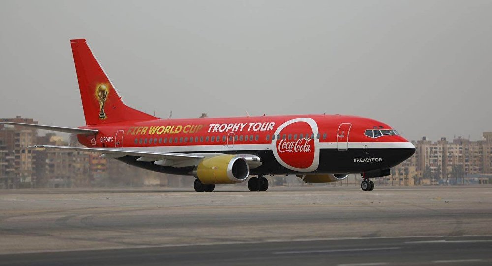 وصلت كأس العالم لكرة القدم إلى مطار القاهرة، اليوم الخميس، في زيارة ترويجية تستغرق 24 ساعة ضمن جولتها العالمية التي تسبق انطلاق البطولة في روسيا في يونيو المقبل.