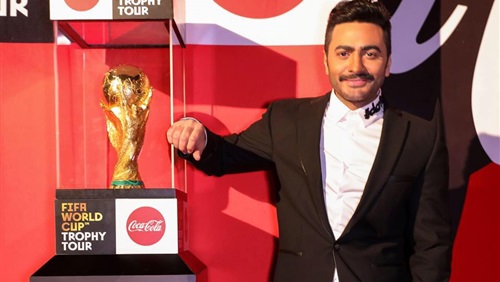 شاهد.. تامر حسني ينشر صورته مع كأس العالم