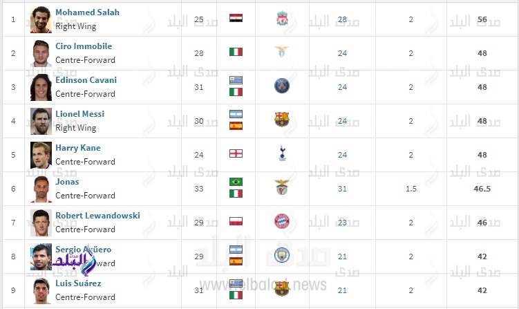 تربع النجم المصري الدولي محمد صلاح هداف فريق ليفربول الانجليزي على عرش صدارة قائمة أفضل هدافي العالم في بطولات الدوري الأوروبية في الموسم الحالي، عقب تسجيله 4 أهداف لفريقه ليفربول في مرمى واتفورد مساء اليوم السبت.