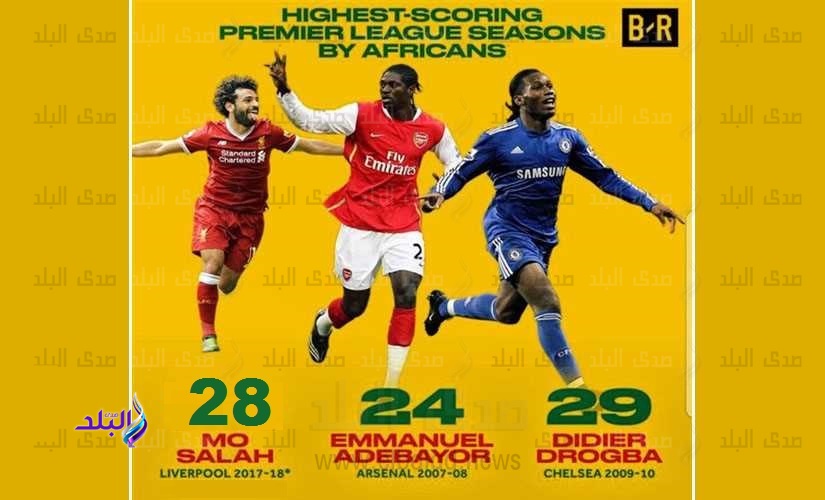 ويتبقى لمحمد صلاح هدف واحد فقط لمعادلة رقم المهاجم الإيفواري ديديه دروجبا الذي يعتبر أكثر لاعب أفريقي سجّل أهدافاً في موسم واحد في الدوري الإنجليزي على مدار التاريخ، وسجّل 29 هدفاً مع فريق تشيلسي في موسم 2009-2010.