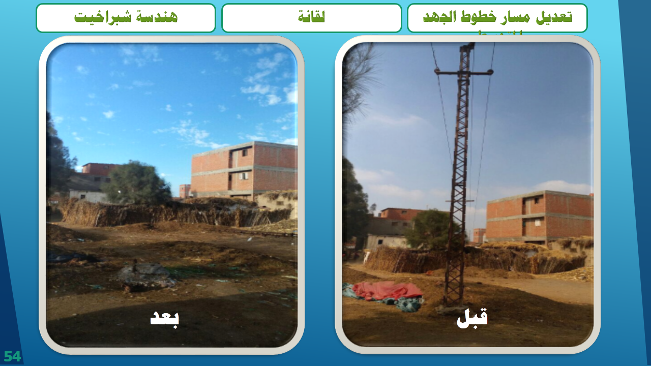 وقد بلغت نسبة التنفيذ لتحويل الخطوط الهوائية لكابلات أرضية بشركة البحيرة حوالى 87%.