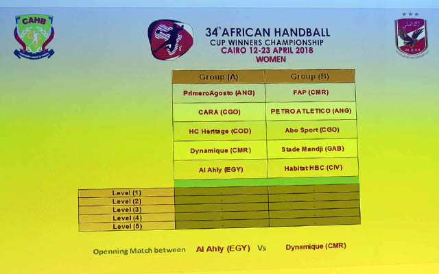 أعلنت اللجنة المنظمة لبطولة إفريقيا لكرة اليد للأندية أبطال الكؤوس رقم 34 «سيدات» التي ينظمها النادي الأهلي قرعة البطولة والتي تجري مراسمها حاليا بمقر النادي بالجزيرة.
