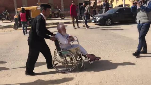 حرص أمين شرطة على مساعدة أحد كبار السن، وتوصيله الى مقر اللجنة الانتخابية للإدلاء بصوته في الانتخابات الرئاسية.