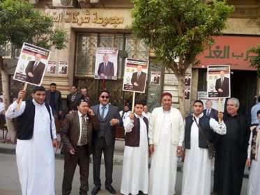 أعضاء القبائل العربية وحزب الغد يرفعون صورا لموسى مصطفى موسى أمام مقر الحملة الانتخابية.. صور