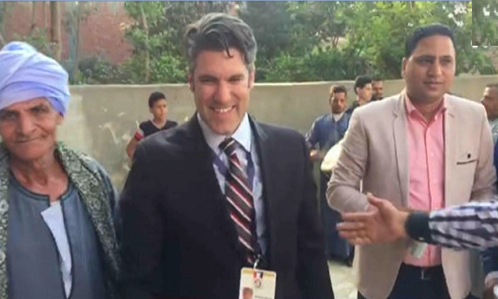 عرض الإعلامي معتز الدمرداش خلال تقديمه برنامج «آخر النهار» المذاع على قناة «النهار» مقطع فيديو للوفد الأمريكي المتابع لعملية الانتخابات الرئاسية في محافظة المنوفية.