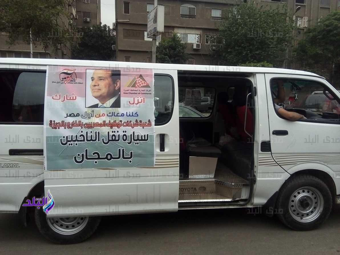 جابت سيارة ميكروباص شوارع الدقي وذلك لنقل الناخبين الراغبين في المشاركة بالانتخابات الرئاسية.