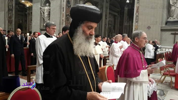 جاء ذلك خلال زيارته التي قام بها مساء السبت لكنيسة القديس بطرس الرسول بالفاتيكان، حيث حضر جانبًا من قداس العيد وقدم التهنئة لقداسة البابا فرنسيس الأول بابا الفاتيكان.