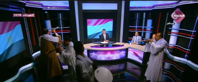 اقتحمت فرقة بالطبل البلدي والمزمار استديو برنامج "الرئيس 2018" على قناة "العاصمة " احتفالا بفوز الرئيس عبد الفتاح السيسي بفترة رئاسية ثانية.