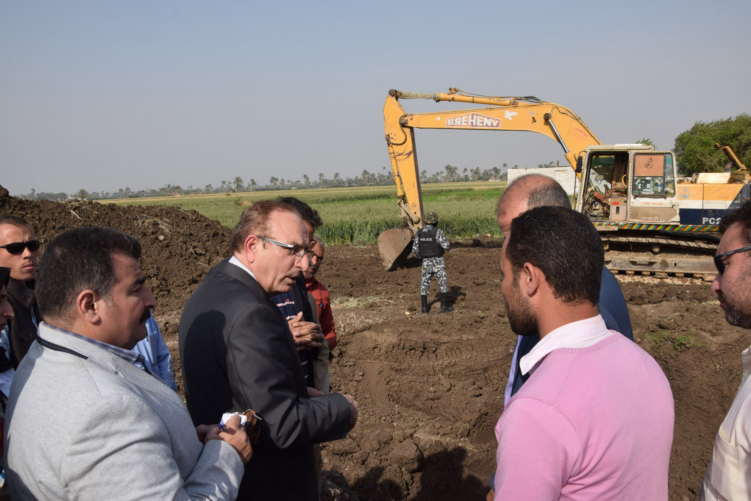 واستمع المحافظ لعرض موجز عن سير العمل من المهندس محمد عودة المشرف على تنفيذ المشروع والذي أكد على أنه قد تم الانتهاء من أعمال إنشاء الشبكات والبالغ طولها 2650 مترًا بنسبة تنفيذ 100% ، ، وتركيب 103 مصفى ، فيما يجرى الآن حفر وتغويط مكان خزان التعادل " كأول مرحلة من مراحل تركيب محطة المعالجة " الذي سيسقبل صرف المنازل ، حيث تبلغ مساحته الصافية 3 أمتار × 5 أمتار، حيث تمت أعمال الحفر له بعرض 6 متر وطول 8 متر وعمق 4 م ، على أن يتم البدء في تركيب الوصلات المنزلية على الشبكة بالتزامن مع أعمال تركيب محطة المعالجة ، لافتًا إلى أنه من المخطط نهو المشروع خلال 6 أشهر قادمة .