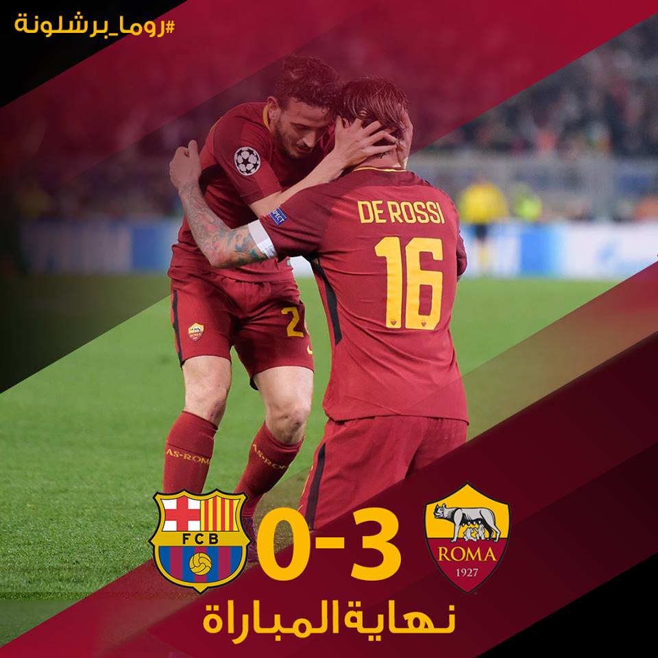 حقيق "روما" مفاجأة بالفوز على برشلونة بثلاثية نظيفة فى المباراة التى تجمع بينهما على ملعب "الأولمبيكو" في إياب الدور ربع النهائي ليصعد إلى نصف نهائي دوري أبطال أوروبا.
