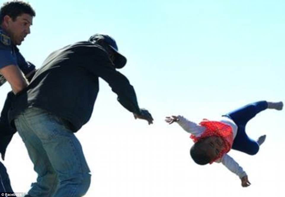ومن حسن الحظ تمكن ضباط الشرطة من إنقاذ الطفلة الرضيعة، بعد إلقائها من أعلى المنزل من قبل والدها، حيث لم تصاب الطفلة بأي إصابات.