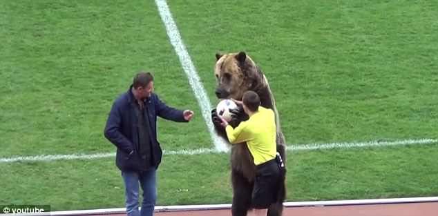 وكان الدب الذي يدعى "تيم"، افتتح مقدمة الماتش بين الفريقين الروسيين.